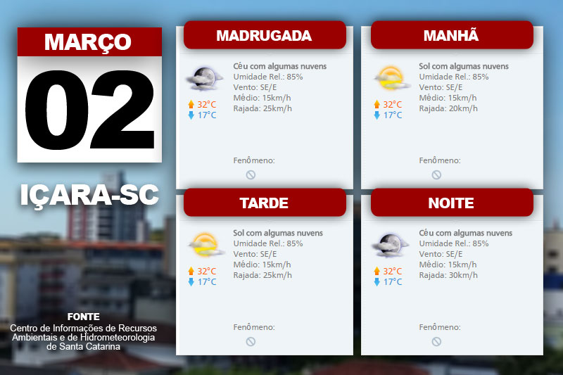 O Sol permanece em boa parte do estado nesta quarta-feira. E o Centro de Informações de Recursos Ambientais e de Hidrometeorologia de Santa Catarina indica ainda a temperatura em elevação durante o dia.