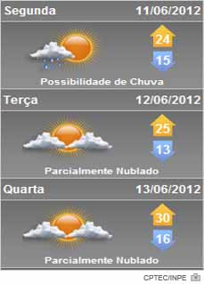 Nesta segunda-feira a condição é de chuva isolada em Santa Catarina. Este cenário retorna à noite nas regiões da Grande Florianópolis e Litoral Norte. Temperatura em elevação. Vento de nordeste e noroeste, com variações momentâneas de sul/sudeste no Planalto Sul e Litoral Sul, fraco a moderado com rajadas. Ainda conforme a Epagri/Ciram, de terça a quinta há presença de Sol. Temperatura em elevação. Vento de nordeste a noroeste, fraco a moderado com rajadas. As temperaturas variam dos 5ºC aos 23ºC.