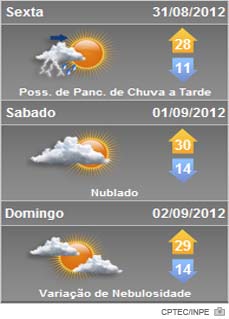 Neste sábado e domingo, o clima aparece firme com Sol e temperatura em elevação em Santa Catarina devido a uma massa de ar seco. Vento de Nordeste, fraco a moderado com rajadas. Ainda conforme a Epagri/Ciram, na segunda-feira também vai prevalecer o Sol e a temperatura mais elevada. A previsão é de 6ºC a 30ºC.