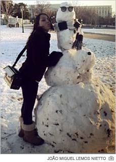 No Sul de Santa Catarina, o calor chegou a 35,77ºC nesta terça-feira, dia 7. Foi perfeito tanto para um banho de praia quanto a degustação de sorvetes. Mas nem todos os içarenses passaram tanto calor assim. Para João Miguel Lemos Nietto e a namorada Caroline Almeida, a temperatura foi inclusive abaixo de zero. De férias nos Estados Unidos, eles enfrentaram -11ºC em Boston neste mesmo dia.