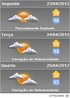Nesta segunda e terça-feira, nevoeiros ao amanhecer e predomínio de Sol no decorrer do dia dos catarinenses. Para a noite há chance de chuva fraca e isolada no Litoral. Temperatura baixa ao amanhecer e à noite com condições para formação de geada nas áreas altas do Planalto Sul. Vento de sudeste, fraco a moderado. As temperaturas variam dos 7 aos 24ºC.