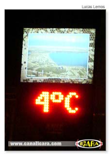 A temperatura em Içara deve manter o mesmo patamar de frio dos últimos dias, chegando próximo a zero. No último fim de semana, o termômetro da Avenida Procópio Lima indicava, às 1h30min, 4ºC.