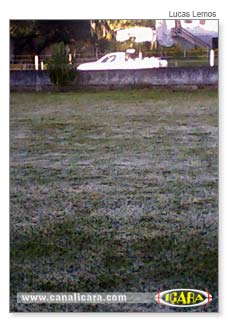 A madrugada desta segunda-feira, dia 16, repetiu as baixas temperaturas de dias anteriores. Porém, quem acordou cedo, pode ver a geada formada sobre os gramados da cidade. A temperatura chegou a 5ºC durante a noite. Pela manhã, os termômetros marcavam 10ºC.