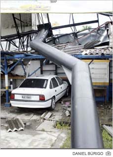 Um pouco mais à frente, nas proximidades do terminal de ônibus, estragos também foram causados no posto São Pedro. O gerente, Mauro Oselame, observa que a estrutura já resistiu a muitos ventos fortes, mas que o de ontem foi superior aos outros. “Foi impressionante. Muito forte mesmo. Parecia um tornado”, informa, acrescentando que durante o sinistro só pensou em proteger os funcionários. O valor do prejuízo não foi contabilizado.