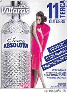 A consumação de vodka será dupla nesta terça-feira, dia 11. Para cada dose ou garrafa, a segunda sairá na faixa. A promoção faz parte da Terça Absoluta. A balada terá ainda Lucas Cruz, Teto Fernandes e Grupo Aconchego dentre as atrações. Em Içara, os ingressos podem ser adquiridos antecipadamente no Auto Posto Nicão. Já em Criciúma, na Lika Variedades. Os bilhetes custam R$ 20 para homens e R$ 10 para mulheres.