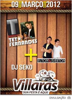 O som acústico de Teto Fernandes vai agitar o Villaras na noite de sexta-feira, dia 9. A festa na comunidade do Mareli terá ainda Elton & Everton, além do DJ Sysco. Os ingressos antecipados para a balada estão disponíveis no Posto Nicão, em Içara, e no Posto Chile, na Próspera, em Criciúma. O valor para os homens é de R$ 20. Já para as mulheres, de R$ 10.