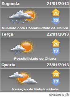 Na terça e quarta-feira presença de nebulosidade variável com chuva isolada no início e final do dia no Vale do Itajaí, Grande Florianópolis. Nas demais regiões tempo estável com predomínio de sol em boa parte do dia. Temperatura em elevação.