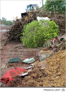 Móveis, lixos domésticos, restos de materiais de construção e caixa d’água. Pela quarta vez em 14 meses foi necessária a limpeza no limite entre Içara e Criciúma pela Linha Três Ribeirões devido aos materiais despejados irregularmente. Ao todo 100 toneladas de lixo e entulhos devem ser recolhidas até ao final desta quarta-feira, dia 23. O trabalho envolve a Secretaria de Obras e Serviços Urbanos de Içara, Fundai e a Prefeitura de Criciúma.