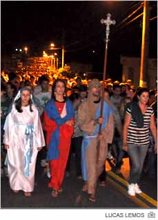 Tão tradicional quanto a caminhada, a chuva neste ano não apareceu. Ainda assim, a quantidade de velas acesas ficou muito aquém de anos anteriores. A demonstração de fé ocorreu também com velas, bíblias e flores colocadas em frente de diferentes empresas e casas. Houve até filme da via sacra projetado numa das moradias.