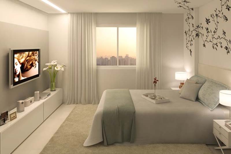 Quartos pequenos podem parecer desconfortáveis, mas, com algumas técnicas e conceitos de decoração enganam os olhos. Paredes com cores claras e brilhantes são mais reflexivas, passam sensação de local aberto e arejado. Isso aumentará o efeito da luz natural. Ter alguns móveis da mesma cor das paredes também dá a impressão de que não ocupam espaço.
