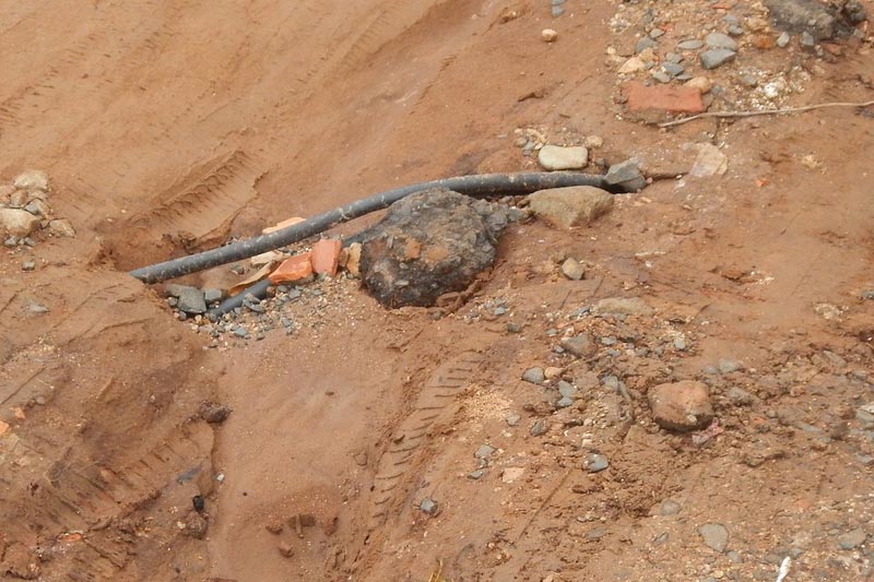 Tubulação é exposta na Rua Lucia Pizzetti