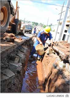 Residências na região central de Içara tiveram o fornecimento de água interrompido por alguns minutos na manhã desta quarta-feira, dia 9. O corte no serviço foi ocasionado pelo rompimento de uma tubulação subterrânea próxima ao cruzamento entre as ruas Anita Garibaldi e Getúlio Vargas. O problema ocorreu durante a escavação das valas para a instalação do esgotamento sanitário do Sistema Autônomo Municipal de Água e Esgoto (Samae).