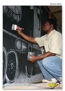 Enquanto profissionais da Secretaria de Obras contam as horas para fazer a entrega oficial do túnel que liga o Centro aos bairros Jaqueline e Jardim Elizabete, que deve acontecer na próxima semana, o artista mineiro Renato Brito, ilustra o local.