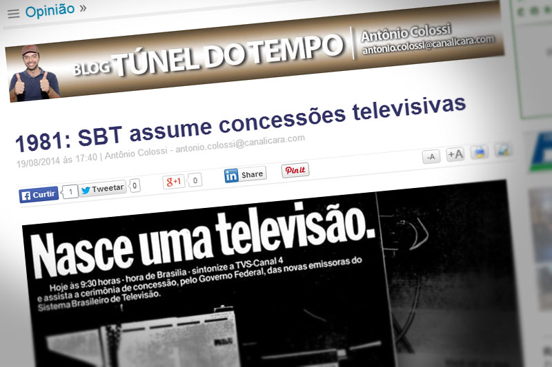Um espaço dedicado a relembrar os principais fatos de esportes, política, economia, segurança ou então as celebridades do passado. Assim será o blog do jornalista Antônio Colossi iniciado nesta terça-feira, dia 19. E como é o foco do Túnel do Tempo, a estreia no portal Canal Içara foi realizada na mesma data em que o SBT e a TV Manchete recebiam as concessões televisivas que pertenciam a TV Tupi.