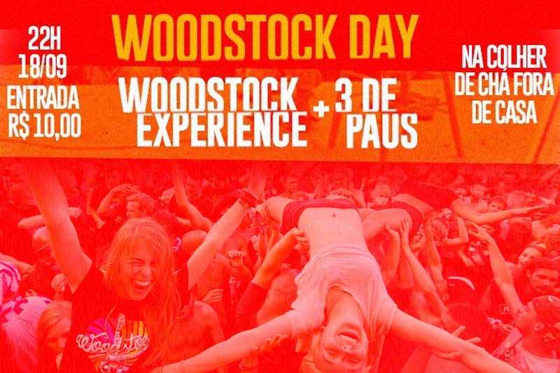 Içara terá o Woodstock Day nesta sexta-feira, dia 18. A festa inspirada no festival americano da década de 1960 acontecerá a partir das 22h no Colher de Chá Fora de Casa. O ritmo musical no espaço de arte e cultura do bairro Presidente Vargas ficará sob a responsabilidade das bandas Woodstock Experience e Três de Paus. Os ingressos, disponíveis no local, serão R$ 10.