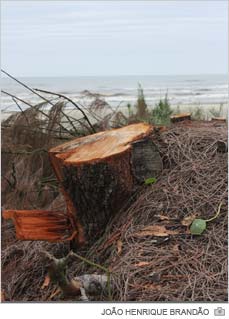 Contudo, o cenário que kelly está acostumada a ver passa por modificações impostas por um Termo de Ajustamento de Conduta criado pelo Ministério Público Federal. “Toda a vegetação que não é nativa será retirada”, explica o superintendente da Fundação Ambiental de Içara, Geraldo Baldissera. A remoção de árvores e espécies exóticas iniciou em 2010.