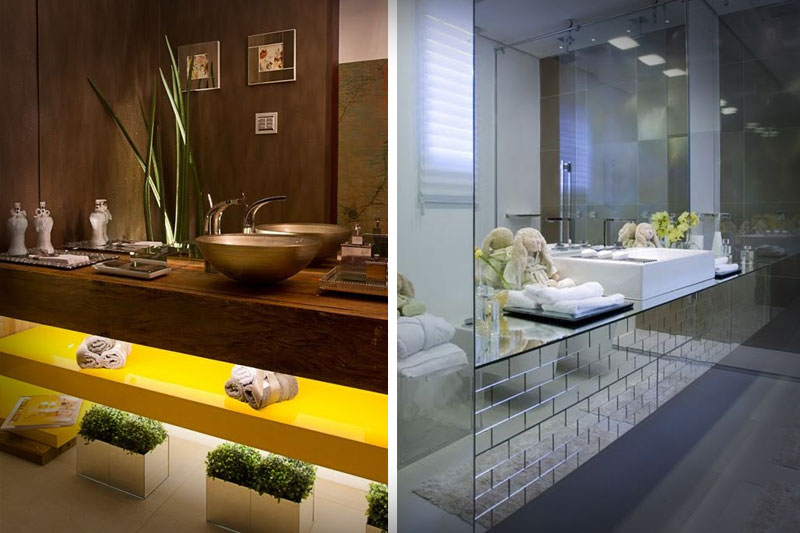 Se a parede é de impacto, a bancada precisa ser clara para criar equilíbrio e harmonia. O mesmo raciocínio vale se for ao contrário. A leveza tem de aparecer para contrapor. É possível ter no projeto o contrastes fortes, mas que vão aparecer em detalhes da bancada, parede e pastilhas. O restante deve ser claro. Independentemente do tamanho, a cor se encaixa em qualquer banheiro.