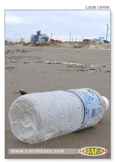 Os veranistas que foram para a beira da praia neste domingo, dia 4, tiveram que dividir espaço com o lixo. No Balneário Rincão, a maré trouxe para a areia garrafas de cerveja, de água e copos plásticos. A natureza devolveu aos poluidores o que a ela não pertence.