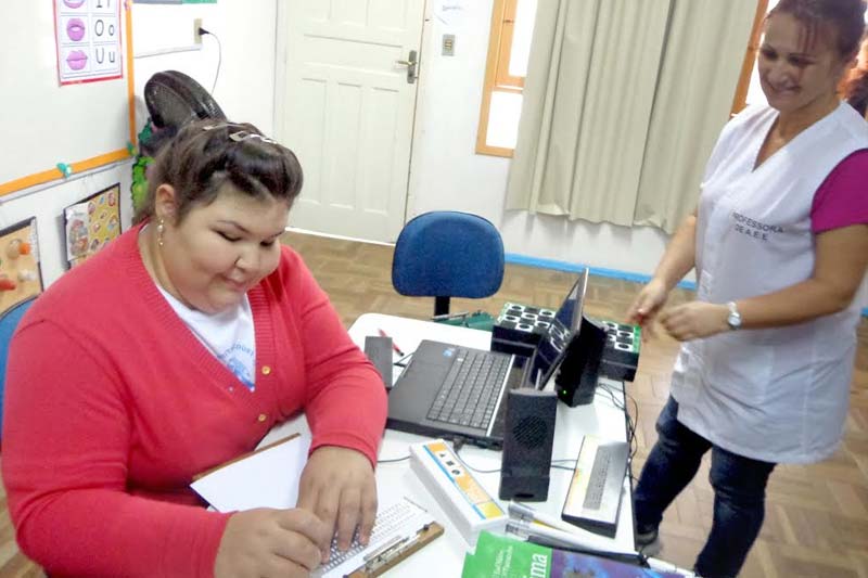 Mas a cegueira não é empecilho para que ela tenha um rotina normal e com o auxílio da professora de educação especial e também amiga, Maria Isabel Luiz, a garota vai quebrando seus limites. Três vezes por semana, em média duas horas diárias, Bel está junto com Kelli na sala multifuncional da escola. No espaço a professora utiliza vários métodos de estimulação visual como a máquina de braile, um software especial para a informática, livros, entre outras coisas.