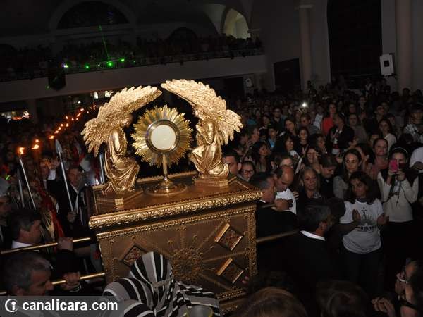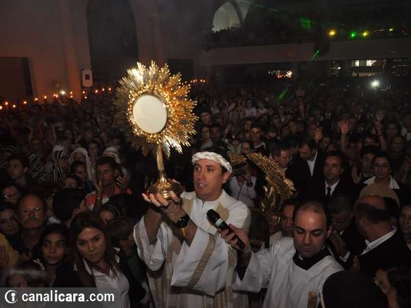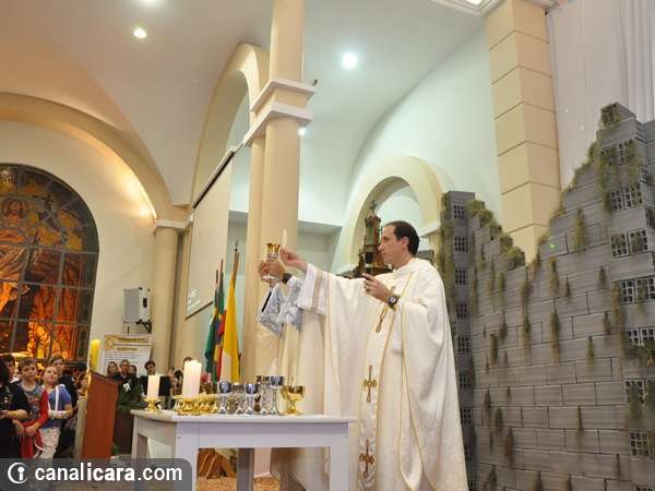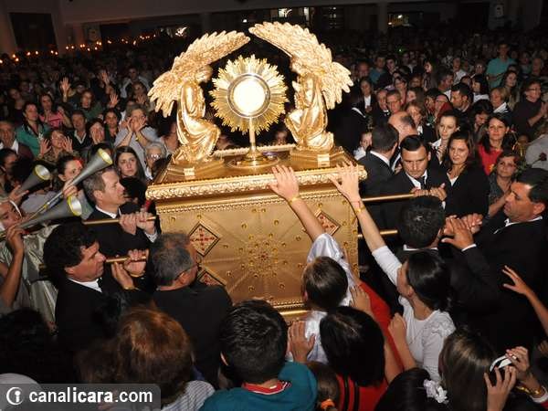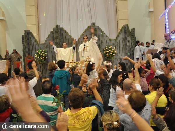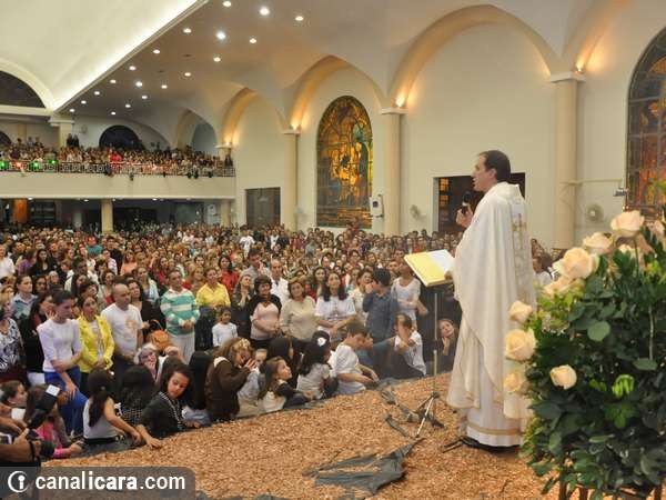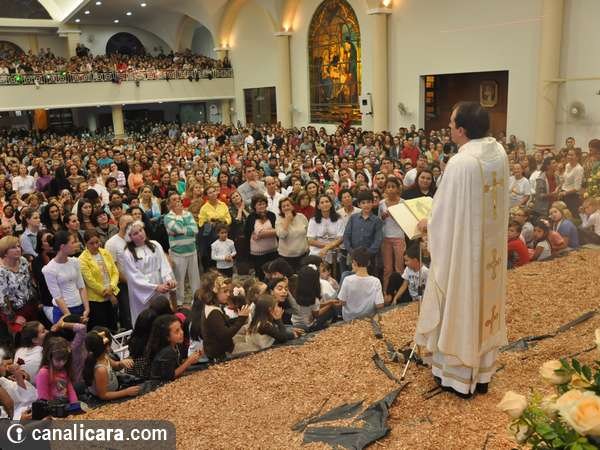 Conforme a passagem bíblica sobre a terra prometida ao povo de Israel, a Arca da Aliança rondou sete vezes na igreja matriz São Donato neste domingo, dia 1. As trombetas também tocaram. Com a explosão de fé dos fiéis e da parede erguida no altar encerrou então a campanha de orações, neste ano, voltada à família com o tema Derrubando muralhas pelo poder da oração e o lema Restaura a nossa casa senhor. “Foram 29 missas durante toda a semana e mais de 80 equipes de trabalho diferenciados na organização”, explica o padre Antônio.