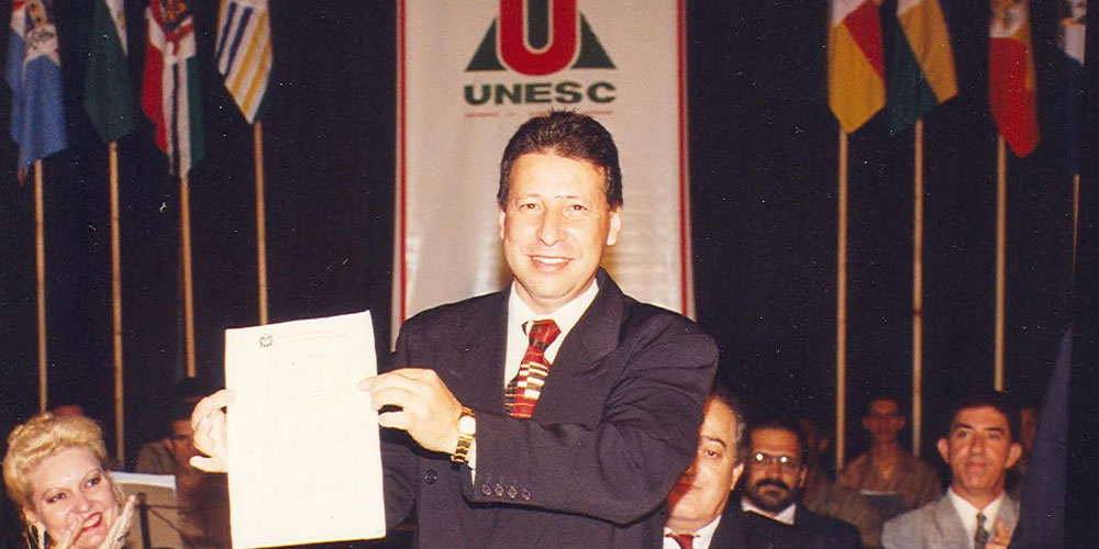 “Fui eleito na época em que a Universidade fazia a sua transição no Conselho Federal de Educação, depois o processo foi transferido para o Conselho Estadual. Nos meus primeiros quatro anos de gestão, nós conseguimos a aprovação da transformação da Unifacri em Unesc. Já no segundo mandato, trabalhamos uma nova perspectiva de uma Universidade que jamais imaginaríamos que seria tão pródiga. Criamos diversos cursos e fizemos o que eu considero que é mais importante para a Instituição: a definição de sua missão”, cita.
