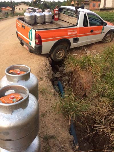 A cratera ultrapassa a largura de uma roda veicular. É o suficiente para provocar danos materiais ou impedir o tráfego como ocorreu com uma camionete na tarde desta terça-feira, dia 29. O veículo usado para abastecer a comunidade com gás de cozinha precisou do auxílio de um trator para ser removido.