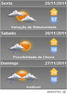 No sábado e domingo o efeito da circulação marítima provoca chuva isolada no período noturno na Grande Florianópolis, Vale do Itajaí, Planalto e Litoral Norte do Estado. Nas demais regiões, predomínio de sol entre nuvens. Temperatura em elevação. Vento de sudeste a nordeste, fraco a moderado com rajadas.