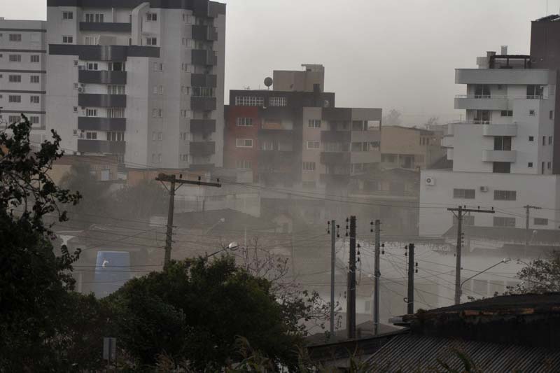 Uma nuvem de poeira encobriu parte de Içara na tarde desta sexta-feira, dia 1. No Centro de Içara, a densidade mais forte foi observada nas proximidades do terminal rodoviário. As rajadas de vento ocorreram por volta das 15h30, duraram cerca de cinco minutos e na sequência deram espaço para a chuva. Em menos de 10min, a temperatura também despencou cerca de oito graus e chegou a 22ºC às 15h50. A previsão é que a temperatura volte a aumentar no próximo domingo. [Temperatura pode chegar a 30°C no Litoral]