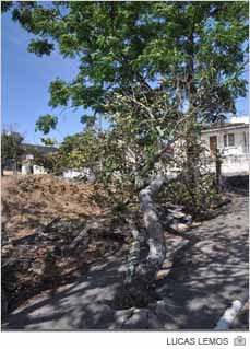A característica verde da Rua Duque de Caxias é derrubada aos poucos. Os fatores são diversos. Além do envenenamento das patas-de-vacas observado por anos e do corte proposital, outro problema é a falta de resistência e a consequente queda. Este último fator foi determinante para que mais uma árvore caísse nesta semana com a ação insistente do vento.