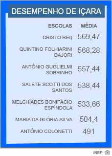 Se considerada apenas a rede pública, os alunos de Vila Nova garantiram o segundo melhor desempenho na cidade. Em terceiro lugar na média de notas ficou então a Escola Salete Scotti dos Santos com 538,44 pontos. E a sequência acabou completada por Melchíades Bonifácio Espíndola (533,66), Maria da Glória Silva (504,4), além de Antônio Colonetti (491).