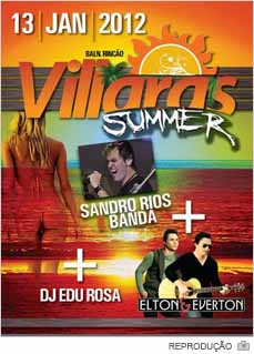 O final de semana chegou e o Villaras Summer tem mais uma festa garantida. A balada será nesta sexta-feira, dia 13. O agito na estrutura do Balneário Rincão acontecerá com três atrações. Estão confirmados Sandro Rios, Elton & Everton, além do DJ Edu Rosa. Os ingressos antecipados já podem ser comprados no Posto Nicão de Içara e Posto Chile da Próspera, em criciúma. Os bilhetes custam R$ 20 aos homens e R$ 10 para as mulheres.