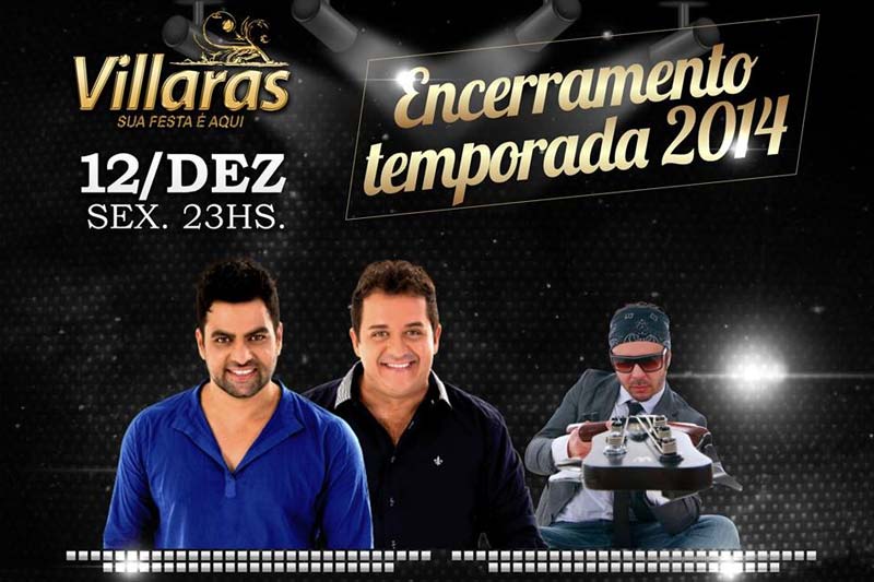 A última festa da temporada 2014 do Villaras será nesta sexta-feira, dia 12. A comemoração acontecerá a partir das 23h com Patrick & Jovani, DJ Seko, além de Evandro Marques. Quatro ingressos e uma garrafa de vodka podem ser adquiridos antecipadamente por R$ 80. Há também a opção de R$ 50 em consumação ou com a entrada por R$ 20 na Loja Mury. As mulheres que incluírem o nome na lista do site Onde Tem Balada [www.ondetembalada.com] terão a entrada liberada até meia-noite. Já os homens receberão 50% de desconto até 1h.