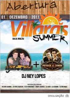 O ambiente litorâneo do Villaras será inaugurado nesta quinta-feira, dia 1. O evento de abertura no Rincão acontecerá com os shows de Neguinho & Emanuel, Patrick & Jovani, além do DJ Ney Lopes. Além disso, algumas participações especiais também constam como atrações. São esperados Victor & Gabriel, Elton & Everton, Teto Fernandes, Vinny Lacerda, DJ Seko, DJ Euzébio e DJ Edu Rosa.