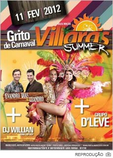O Villaras Summer esquenta com Teto Fernandes, Patrick & Jovani, além do DJ Edu Rosa nesta sexta-feira, dia 10. E no sábado faz então o grito de Carnaval. A badala terá Evandro Dias & Leandro, Grupo D´Leve e DJ Willian. Os ingressos podem ser adquiridos antecipadamente no Auto Posto Nicão de Içara, Lika Variedades e Posto Chile, no bairro Próspera, em Criciúma. O valor para os homens é de R$ 20. Já para as mulheres, R$ 10.