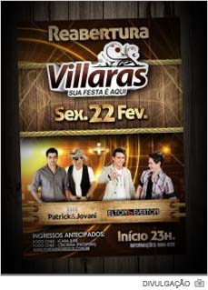 O Villaras volta para Içara vai agitar novamente a Rodovia Deputado Paulino Búrigo (SC-445) a partir desta sexta-feira, dia 22. A festa no casarão do bairro Mareli será reaberta com duas atrações. O palco terá Patrick & Jovani, além de Elton & Everton. Os shows começarão às 23h.