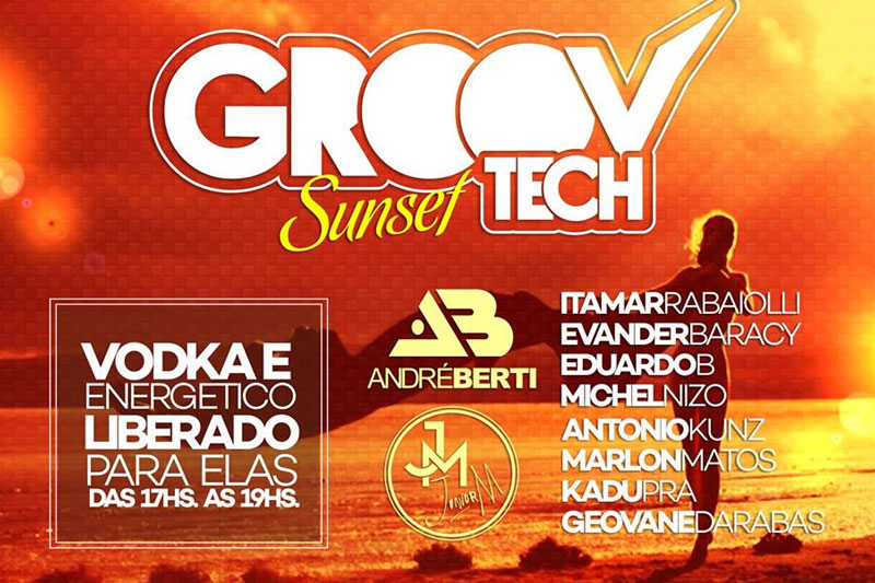 A Groov Tech Sunset vai movimentar o Villaras a partir das 17h deste sábado, dia 25. A balada no casarão do bairro Liri terá Itamar Rabaiolli, Evander Baracy, Eduardo B, Michel Nizo, Antônio Kunz, Marlon Matos, Kadu Pra, Geovane Darabas, André Berti e JM Júnior. Além disso, vai liberar vodka e energético para as mulheres até às 19h. Os ingressos antecipados já podem ser adquiridos por R$ 25 aos homens e R$ 20 para as mulheres. Em Içara, eles estão disponíveis na Loja Mury.