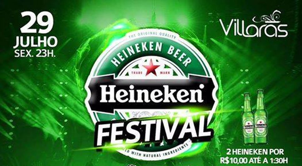 DJ Bortollin, Evandro Marques, Marcelo Maier e Edu Rosa formarão o Heineken Festival no Villaras nesta sexta-feira, dia 29. Os ingressos antecipados estão disponíveis por R$ 20 para elas e R$ 30 para eles. As mulheres com nome na lista terão entrada livre até meia-noite. No caso dos homens, o valor será de R$ 20 até 0h30. O cadastro deve ser feito pelo telefone (48) 9841-7309.