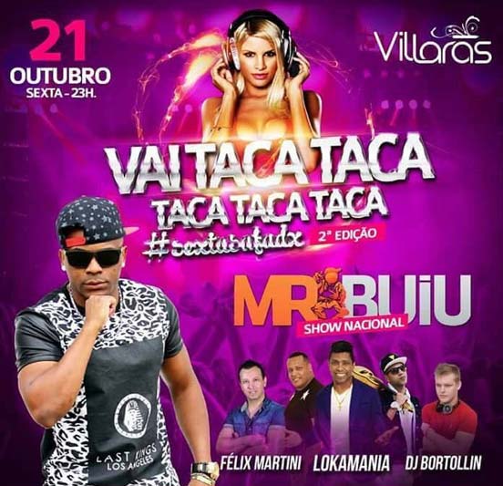 A balada do Villaras vai ter como principal atração o funkeiro MR Buiu nesta sexta-feira, dia 21. A festa no casarão do bairro Liri terá também Félix Martini, Lokamania e DJ Bortollin a partir das 23h. As mulheres terão acesso liberado nos primeiros 30min. Para quem fizer o cadastro na lista da casa noturna pelo Whatsapp (48) 9841-7309 os ingressos serão R$ 25 aos homens e R$ 15 para mulheres até meia-noite.