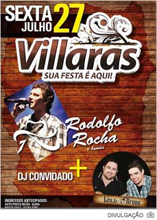 Além de DJs convidados, o Villaras terá duas bandas nesta sexta-feira, dia 27. A noite será embalada por Rodolfo Rocha, além de Léo Júnior & Bruno. Aos interessados, os ingressos antecipados já podem ser adquiridos antecipadamente no Posto Nicão e Postos Chile por R$ 20 aos homens e R$ 10 para as mulheres. Quem preferir, pode comprar com bônus também na bilheteria do casarão do bairro Mareli. Para isso deve enviar o RG e o nome para o e-mail villaras@villaras.net.br até às 18h de sexta-feira. O desconto, contudo, valerá somente até meia-noite.