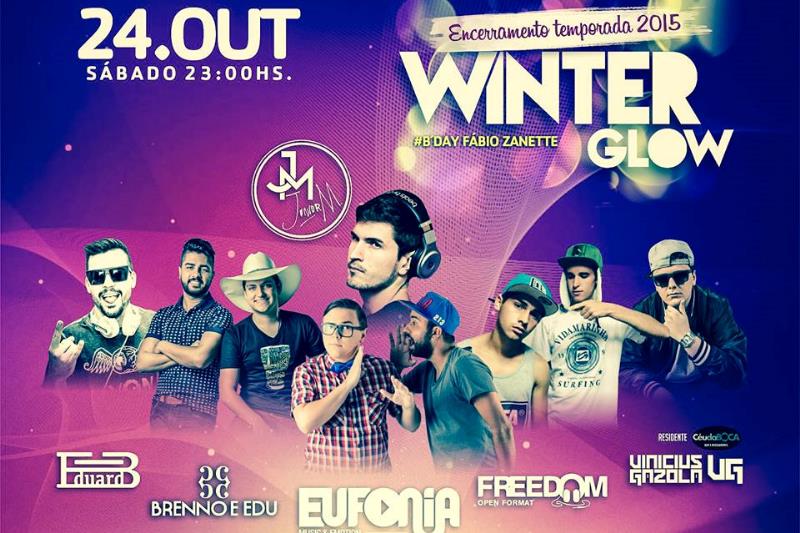 A festa Winter Glow vai fechar a temporada de 2015 neste sábado, dia 24. O encerramento acontecerá no Villaras com Brenno & Edu, Eufonia, Freedom, EduardB e Vinicius Gazola a partir das 23h. As mulheres também terão vodka e energético liberados até os 30 primeiros minutos de domingo.