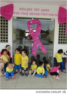 No Centro de Educação Zilda Arns, a decoração ganhou laços em referência ao Outubro Rosa. Segundo a diretora, Daniela Silveira, a equipe entrou de cabeça no trabalho pela conscientização para o exame de câncer de mama. “Temos um quadro de funcionários formado por 37 mulheres e esta foi uma das razões que nos levou a aderir à campanha. E, além do trabalho com as crianças, estamos conscientizando os familiares dos alunos e comunidade sobre a importância da prevenção e cuidados”, aponta.