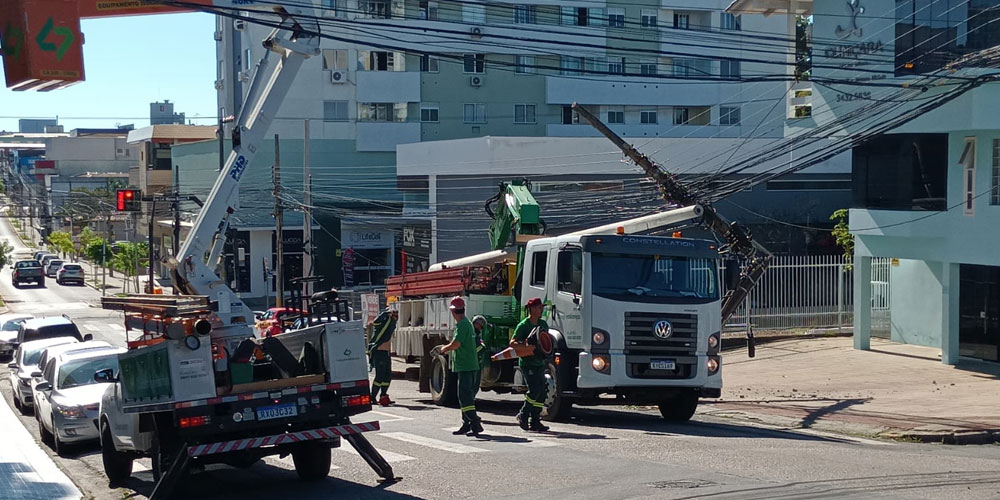 Além de afetar localmente o fornecimento de energia, a colisão de um caminhão comercial contra um poste na Rua Marcos Rovaris também atingiu diferentes redes de comunicação de Içara nesta quinta-feira, dia 1. A estrutura de concreto partiu ao meio próximo a esquina com a Rua Quinze de Novembro e afetou cabos de dados que atendem bairros centrais da cidade.