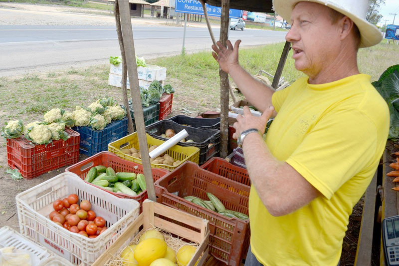 “Eu plantava as verduras e busquei começar a vender. E foi na beira de estrada que encontrei a oportunidade. Somente uns dois anos depois é que parti para algo fechado”, conta o agricultor. De acordo com ele, nos produtos que são vendidos não é utilizado agrotóxico. “Uso adubo, para deixar a planta mais sadia, mas veneno não coloco”, garante.