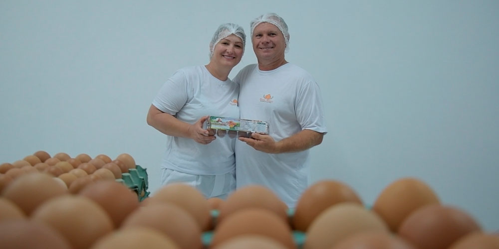"Pensando na diversificação da propriedade, iniciamos a produção de ovos de galinha em 2005 com o Selo de Inspeção Municipal. O SIM virou o SIM-Amrec e hoje temos a oportunidade de vender para todo o território nacional com o Sisbi. Isso nos motiva a continuar no campo, a comprar maquinário e até pensar numa sucessão familiar. Temos a produção de 3,7 mil ovos por dia. Em breve chegaremos a 8 mil e já temos espaço para ampliar ainda mais, para até 10 mil ovos/dia", ressalta o empreendedor, Fabiano Bortolatto.