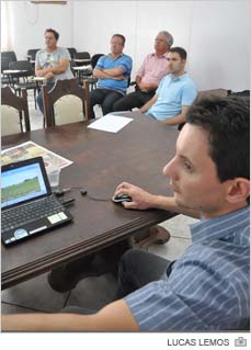“Precisamos fazer o produtor trabalhar com mais técnica, principalmente, de forma preventiva. Aqui para nós é novidade. Mas em outras regiões já é costume este controle”, coloca o acadêmico de Agronomia e técnico agrícola Cooperativa Regional Auriverde, Vagner Rocha da Costa. Ao todo, quatro empresas participaram da reunião.