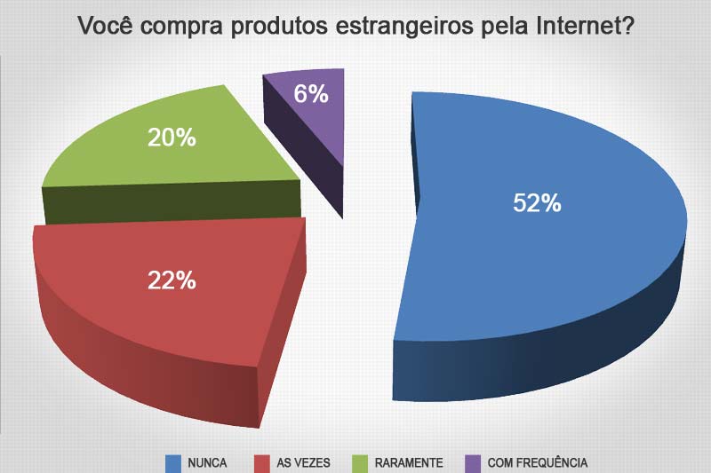 Você compra produtos estrangeiros pela Internet? Para 52% dos leitores do Canal Içara esta não é uma realidade. Outros 22% indicam que adquirem produtos às vezes. Para 20% ocorre raramente. Apenas 6% assumiram que realizam compras com frequência. A enquete realizada pelo portal teve a participação de 46 internautas de 21 a 28 de setembro.
