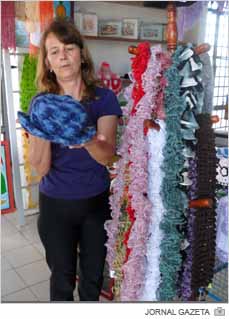 “Nada fica para a loja tudo o que é vendido é repassado para as artesãs”, garante Terezinha. Claro, que não é somente artigos de inverno que podem ser encontrados. Lá você pode escolher objetos para sua casa como tapetes, panos de prato, espelhos decorados e outros itens, além de bijuterias e acessórios como tiaras e grampos para o cabelo, bolsas, sandálias. Tudo com valor super em conta. “As tiaras são lindas e estão à venda a partir de R$10,00”, destaca Terezinha.