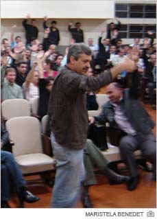 Os bancários lotaram o Auditório São José, em Criciúma, na noite deste dia 28, e aprovaram greve por tempo indeterminado a partir de quarta-feira. Na assembleia com cerca de 300 bancários, 100% dos trabalhadores votaram pela paralisação. Ou seja, a categoria rejeitou a única proposta, de 4,29% de reposição da inflação dos últimos 12 meses e PLR inferior à do ano passado, oferecida pela Federação Nacional dos Bancos (Fenaban).