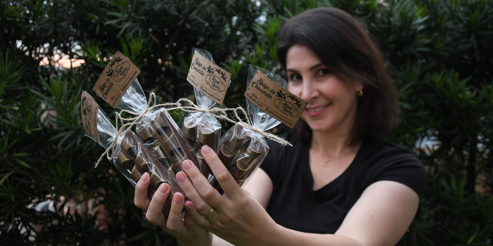 “Nessas comilanças, comecei a inventar algumas coisas, até que tive a ideia de fazer barras de chocolate. Então, comprei uma forminha e fiz”, descreve a empreendedora. Segundo ela, além da família, as receitas foram testadas também por vizinhos e amigos. As experiências foram relatadas no Instagram, o que logo levou aos pedidos para a venda.