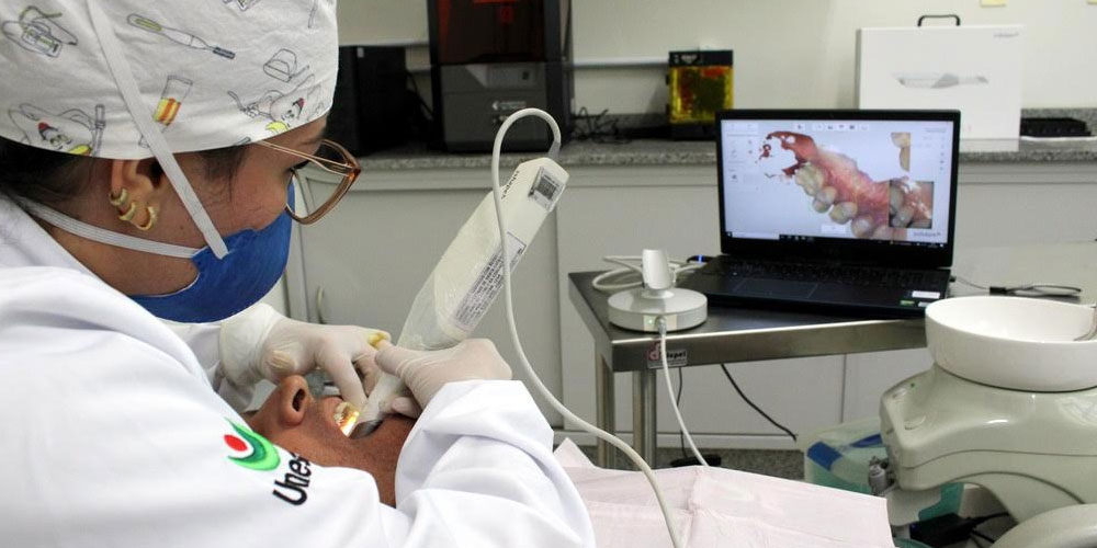 Um dos equipamentos mais notáveis nesse cenário é o Scanner Intraoral Digital, uma das mais avançadas ferramentas disponíveis na área. “O equipamento é essencial para realizar a transição da clínica odontológica para o universo da Odontologia 3D. Ele possibilita realizar diversas simulações de tratamentos dentários, auxiliando na tomada de decisões e escolhas mais precisas. Isso nos permite aprimorar áreas de difícil acesso de forma simples e entregar resultados com maior exatidão. É uma tecnologia que poucas Universidades têm a oportunidade de possuir”, detalha o professor Leandro Mezzari.